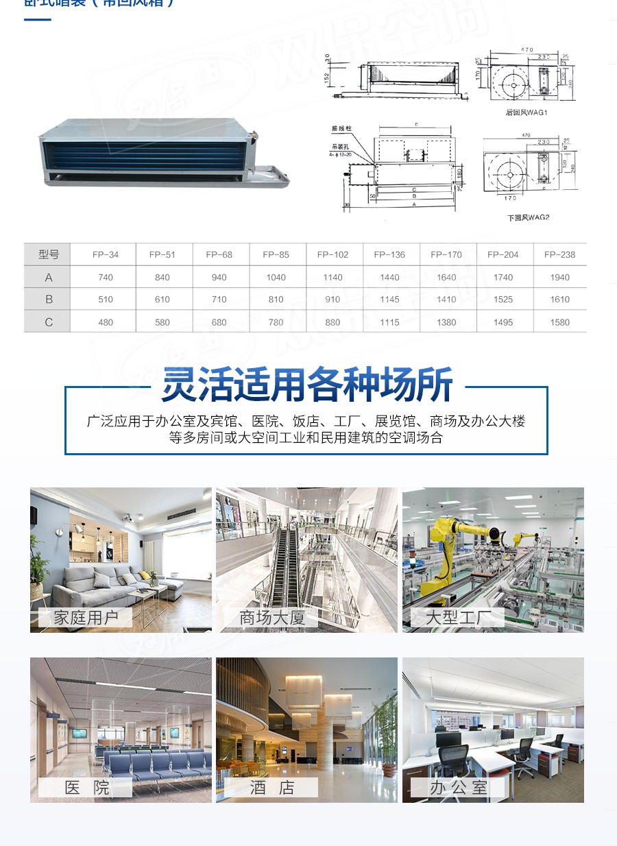 【產品名稱】臥式暗裝風機盤管 【生產廠家】江蘇雙保空調有限公司